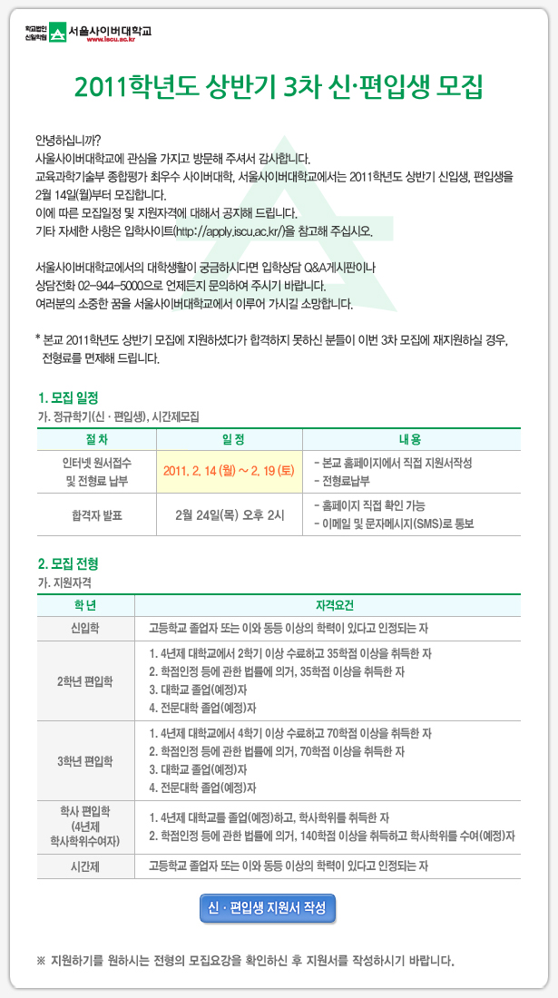 2026 상반기 2차 신·편입생 모집 지원서 작성