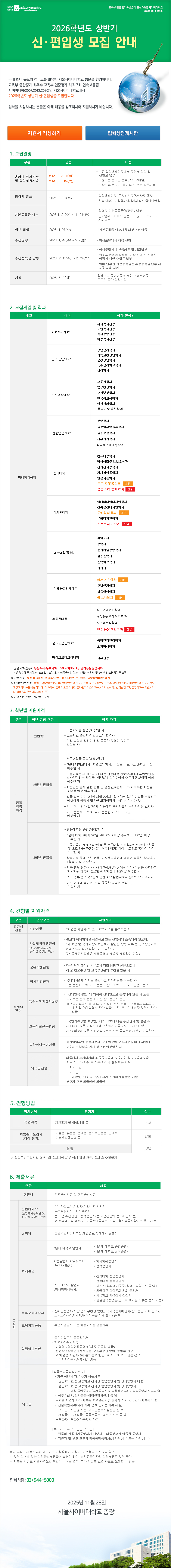2026학년도 상반기 신·편입생 모집 안내